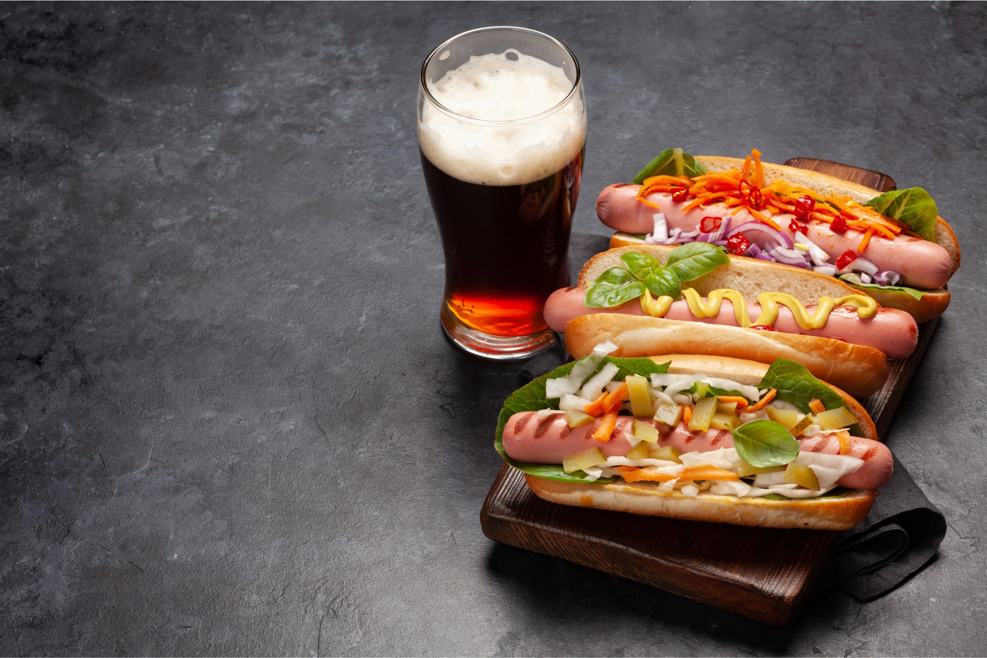 Žemla, dresing cesnakový,šunka, syr plát, paradajky, uhorka šalátová, kukurica, cibuľa červená, čili, šalát